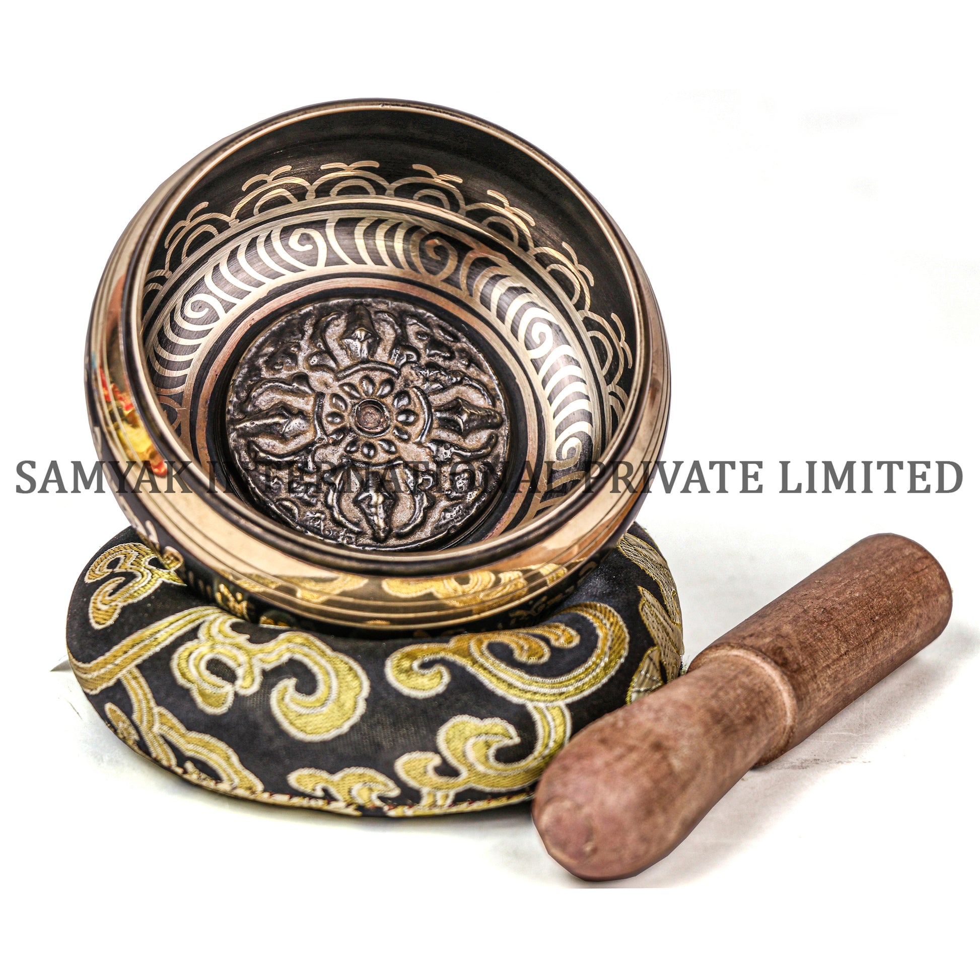 Decorated bowls are hand engraved inside with varieties of antique, simple and beautiful arts, designs, or mantras (Tibetan mantra of compassion, Om Mani Padme Hum) by our Nepalese expert craftsmen and crafts women. They can be found outside the rim, inside the bottom, around the top of the rim and sometimes on the outside bottom of the bowl.