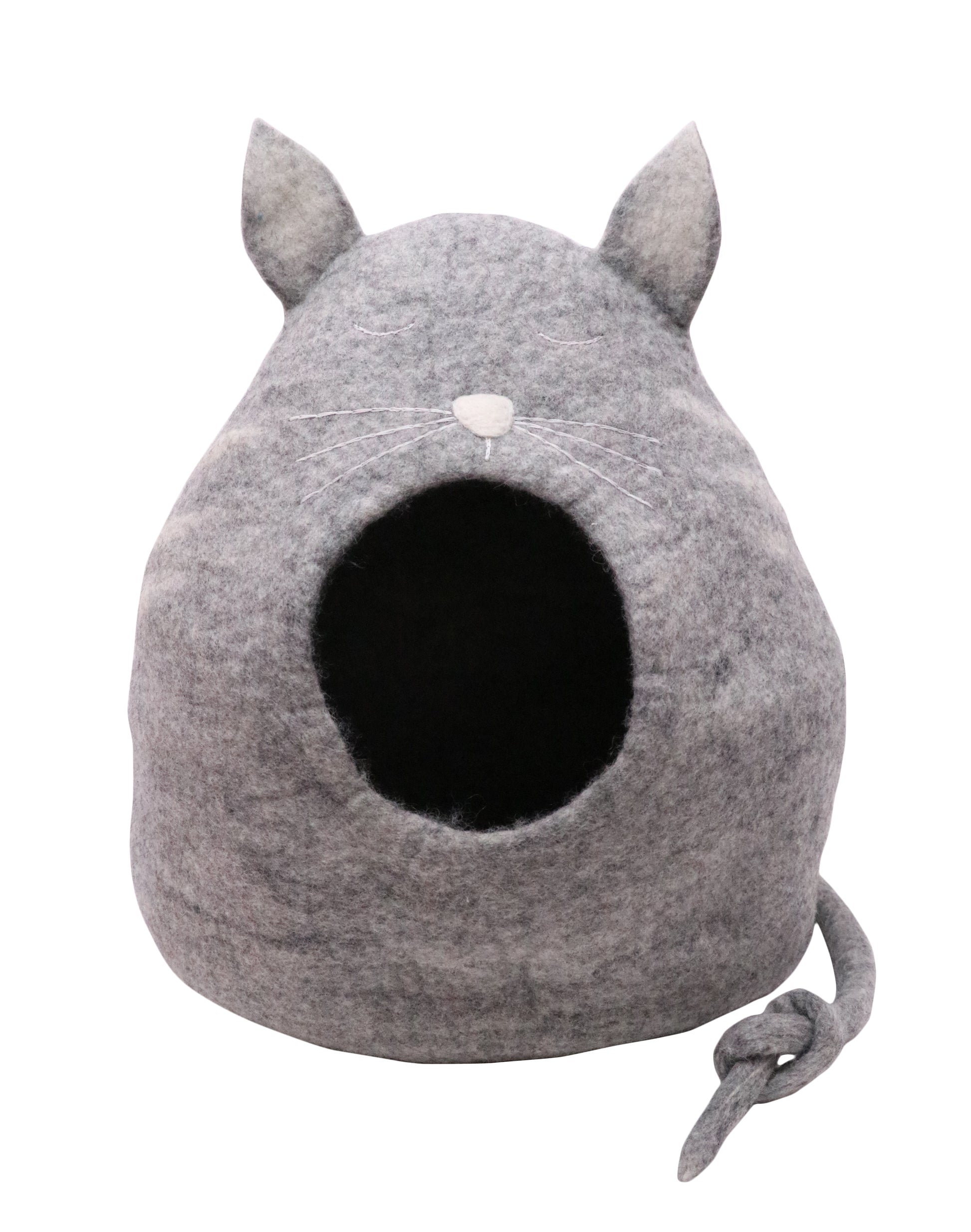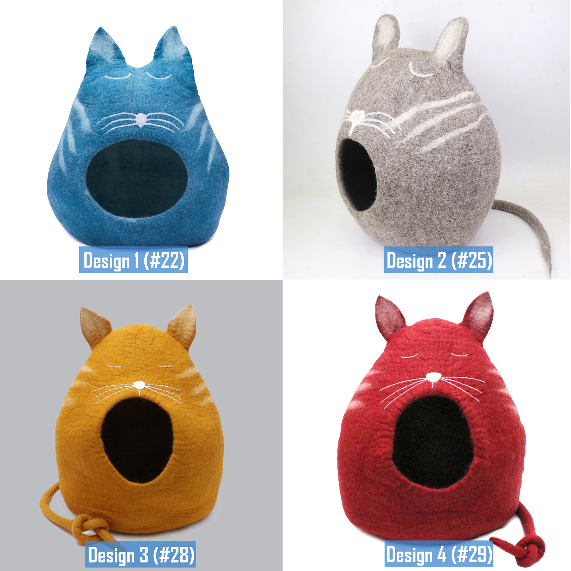 These felted cat caves are easy to clean. Use soap and water to wash them, but gently. Remember to restore their shape before drying. You can also brush with soft brush or use vacuum cleaner.