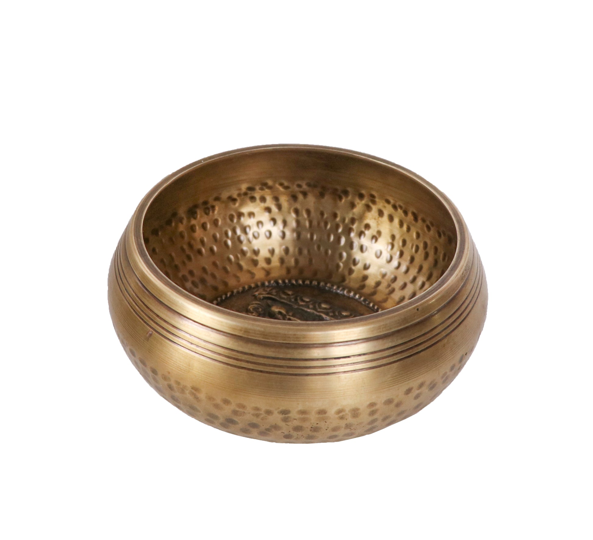 Decorated bowls are hand engraved inside with varieties of antique, simple and beautiful arts, designs, or mantras (Tibetan mantra of compassion, Om Mani Padme Hum) by our Nepalese expert craftsmen and crafts women. They can be found outside the rim, inside the bottom, around the top of the rim and sometimes on the outside bottom of the bowl.