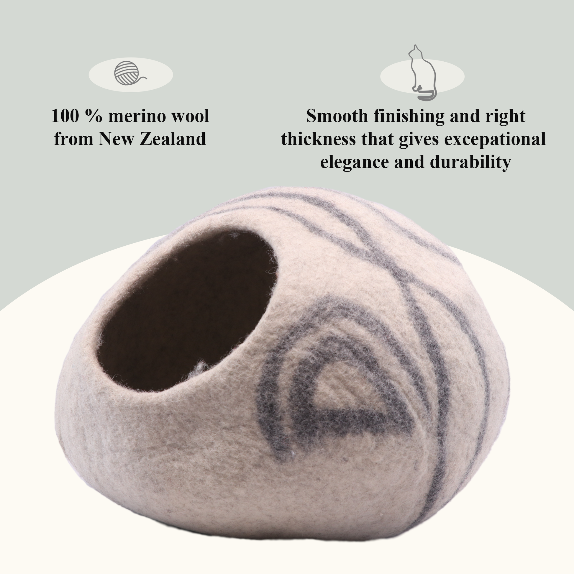 These felted cat caves are easy to clean. Use soap and water to wash them, but gently. Remember to restore their shape before drying. You can also brush with soft brush or use vacuum cleaner.