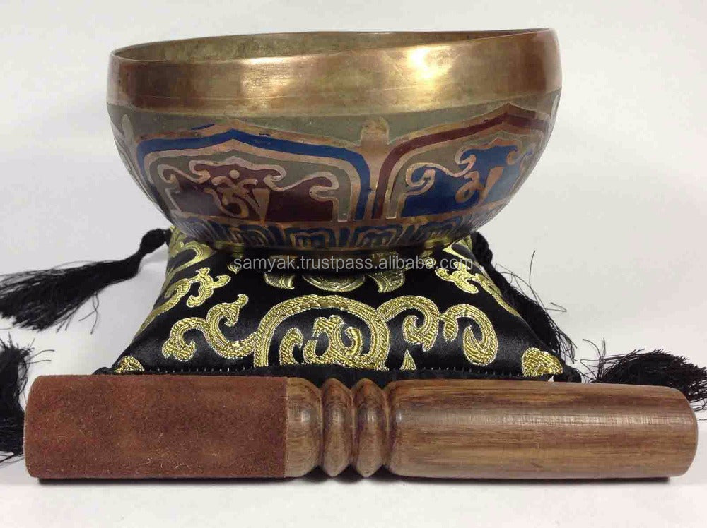 Meditation Monastery Singing Bowl Brass Metal Mantra Carved Tibetan Bowls Colored Handmade from Nepal