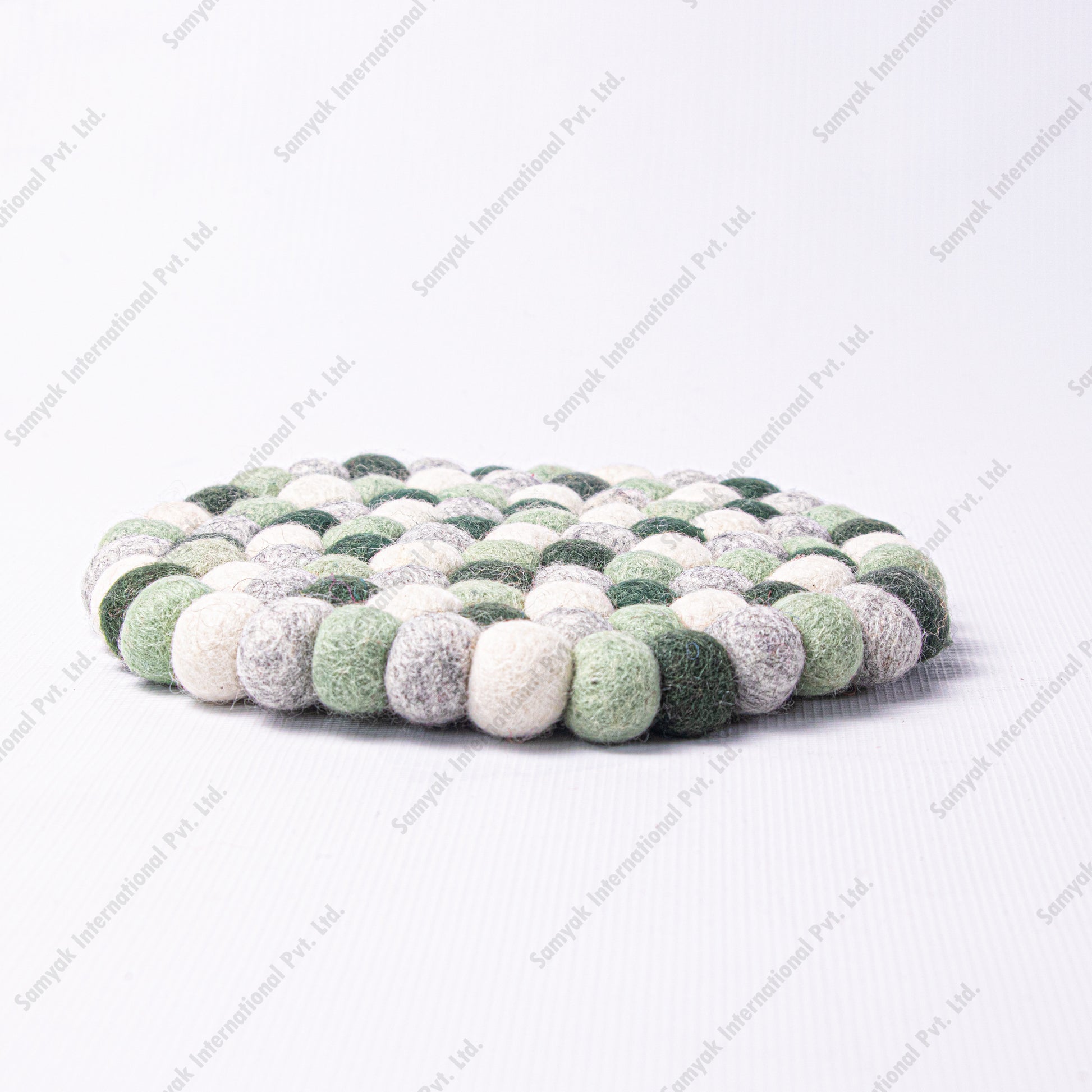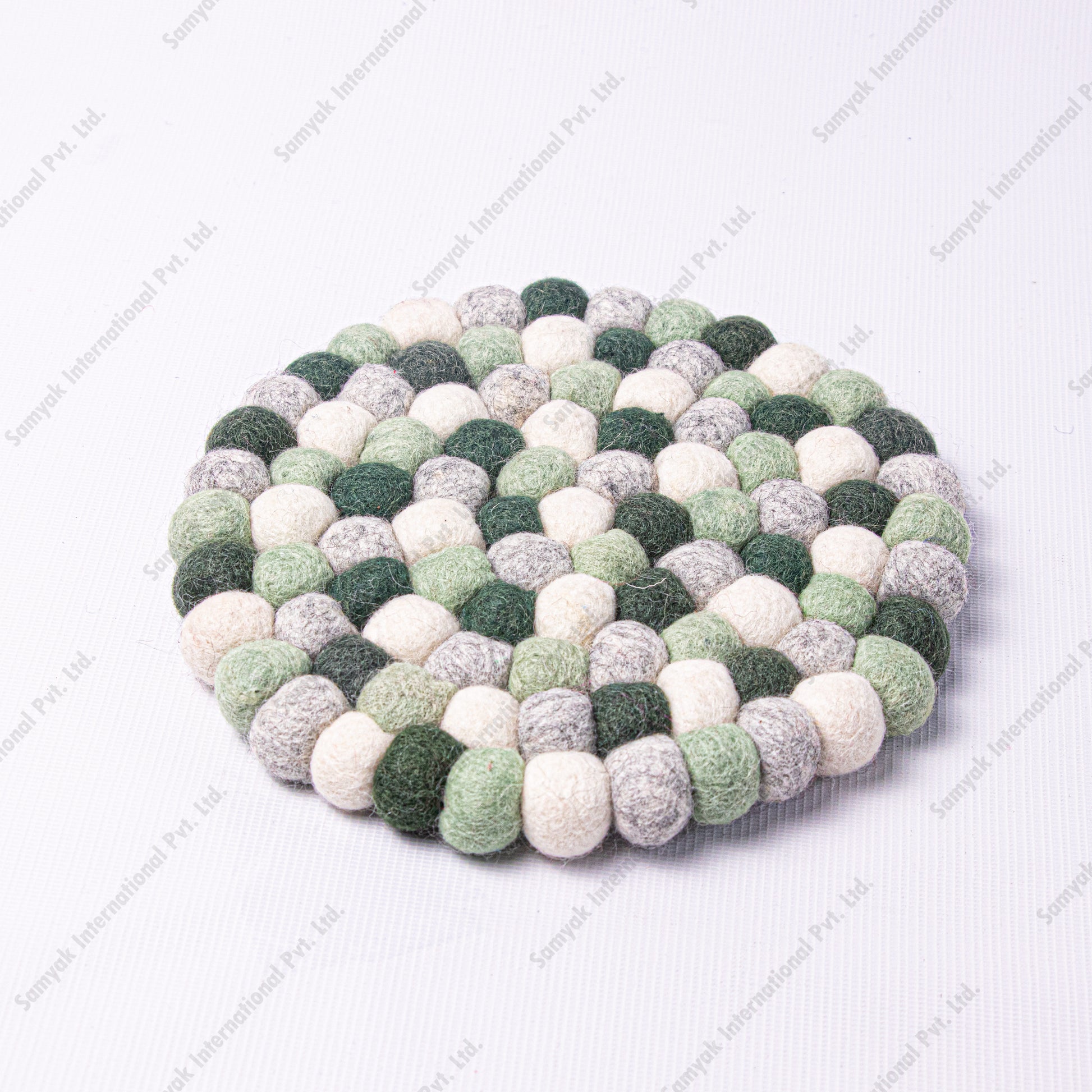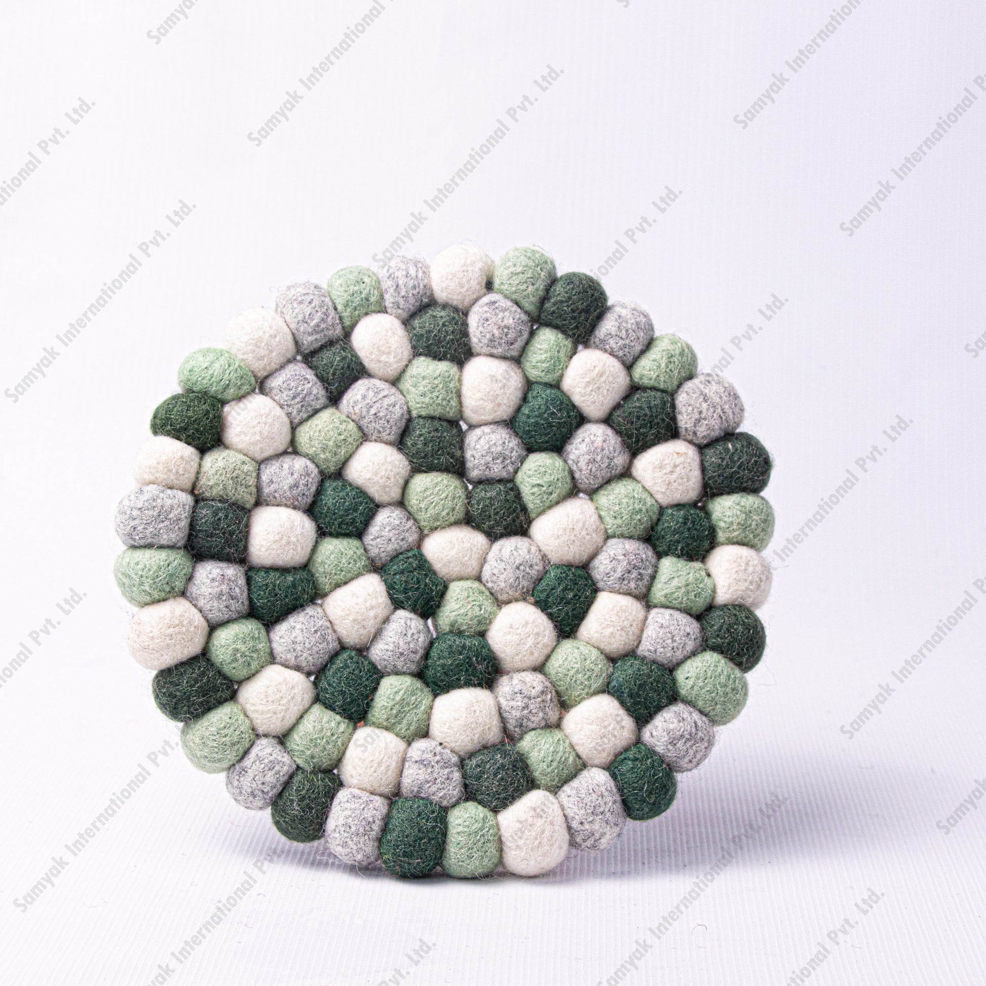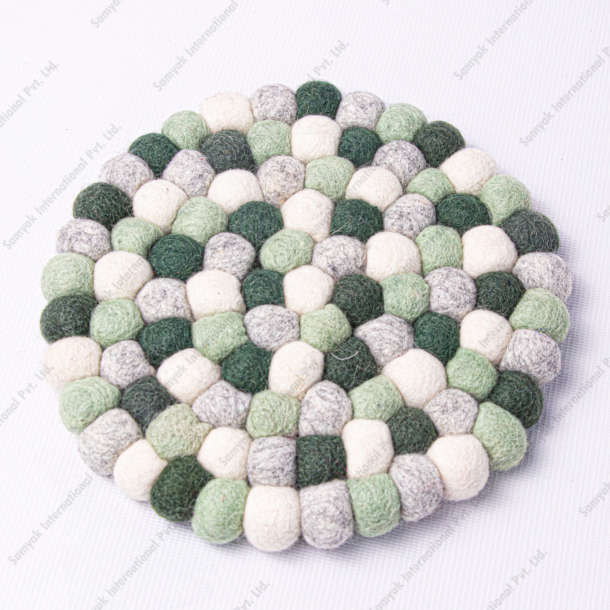 1. Material: Our felt coasters are made by connecting mini felt balls which are expertly crafted from high-quality felt fabric. Felt is a soft, durable, and eco-friendly material made from compressed and matted fibers, providing excellent protection for your furniture.