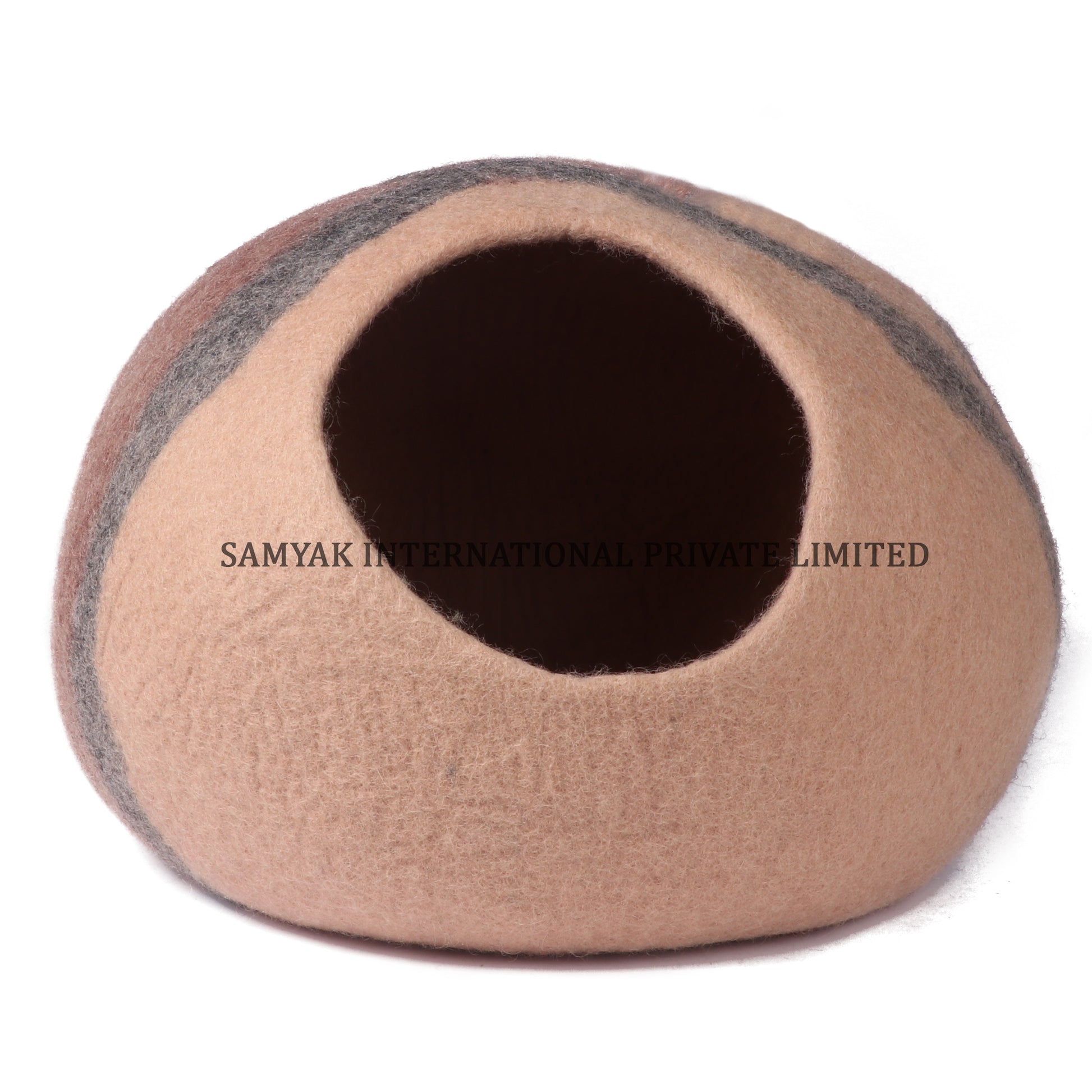 These felted cat caves are easy to clean. Use soap and water to wash them, but gently. Remember to restore their shape before drying. You can also brush with soft brush or use vacuum cleaner.