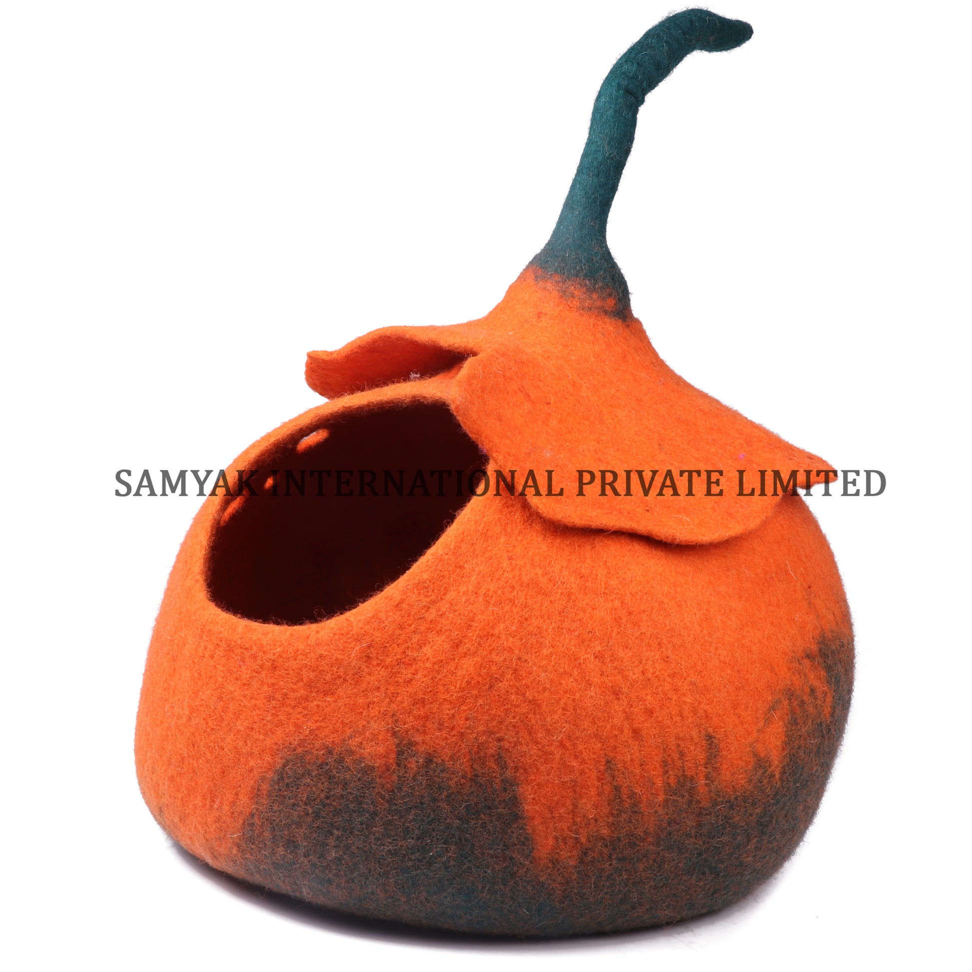 These felted cat caves are easy to clean. Use soap and water to wash them, but gently. Remember to restore their shape before drying. You can also brush with soft brush or use vacuum cleaner.