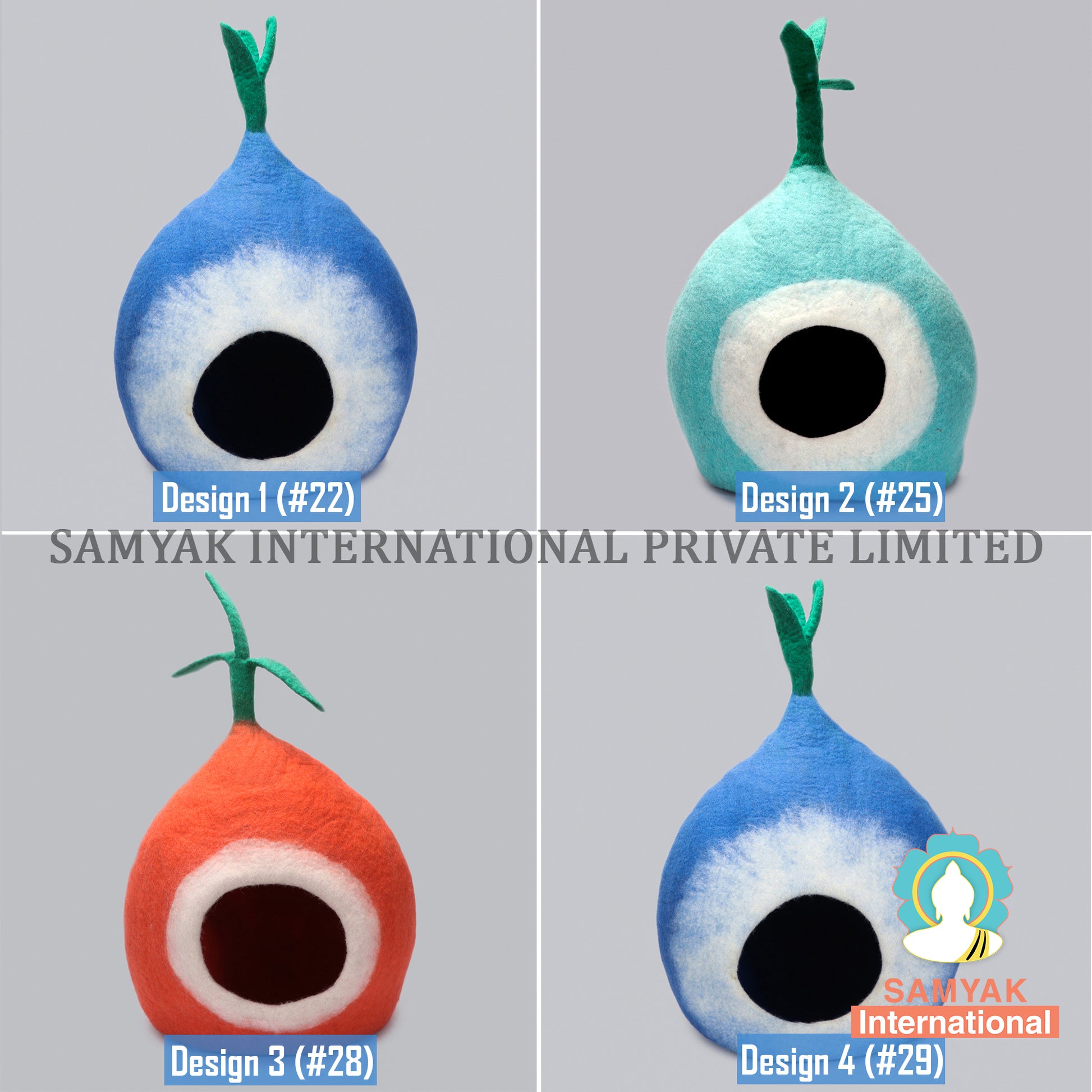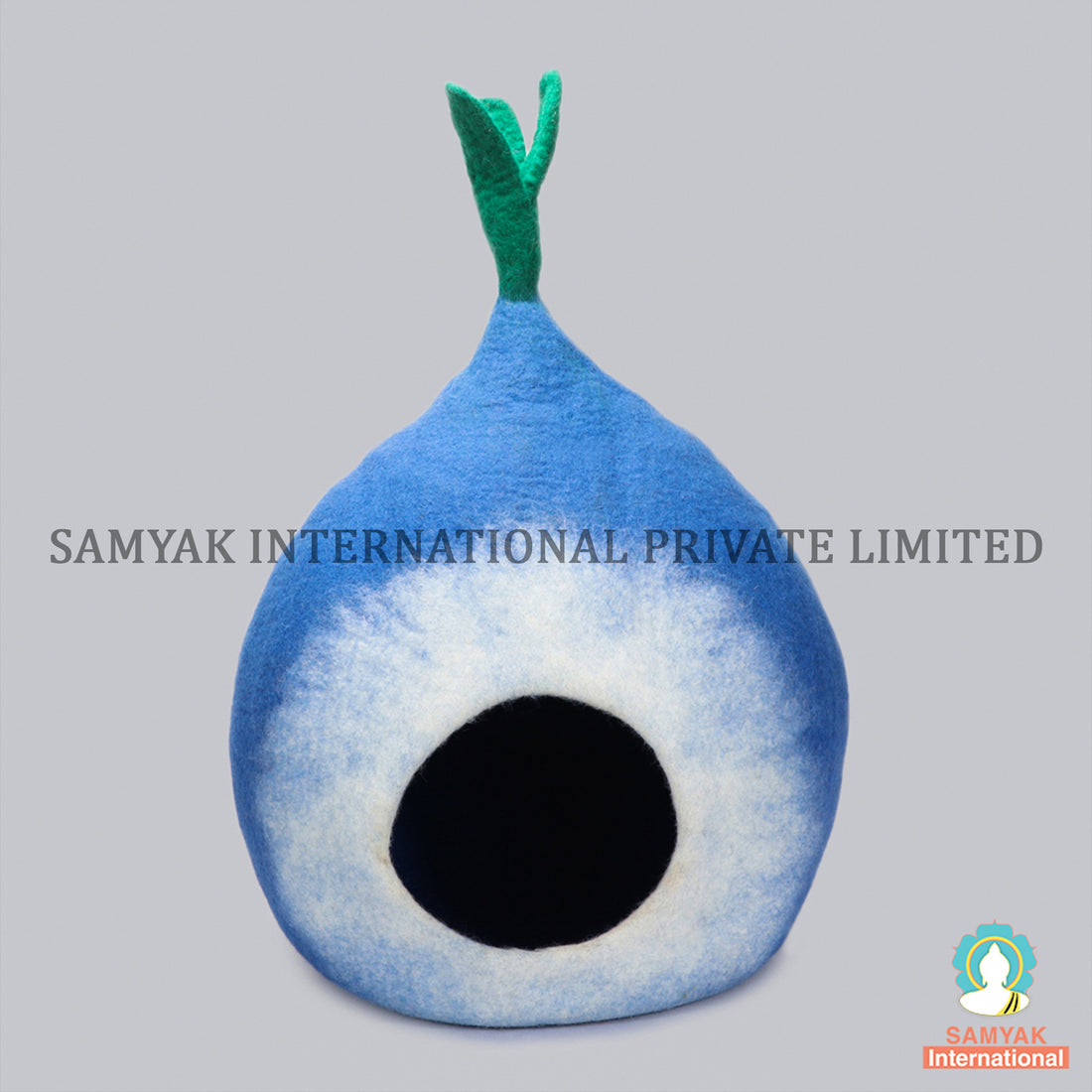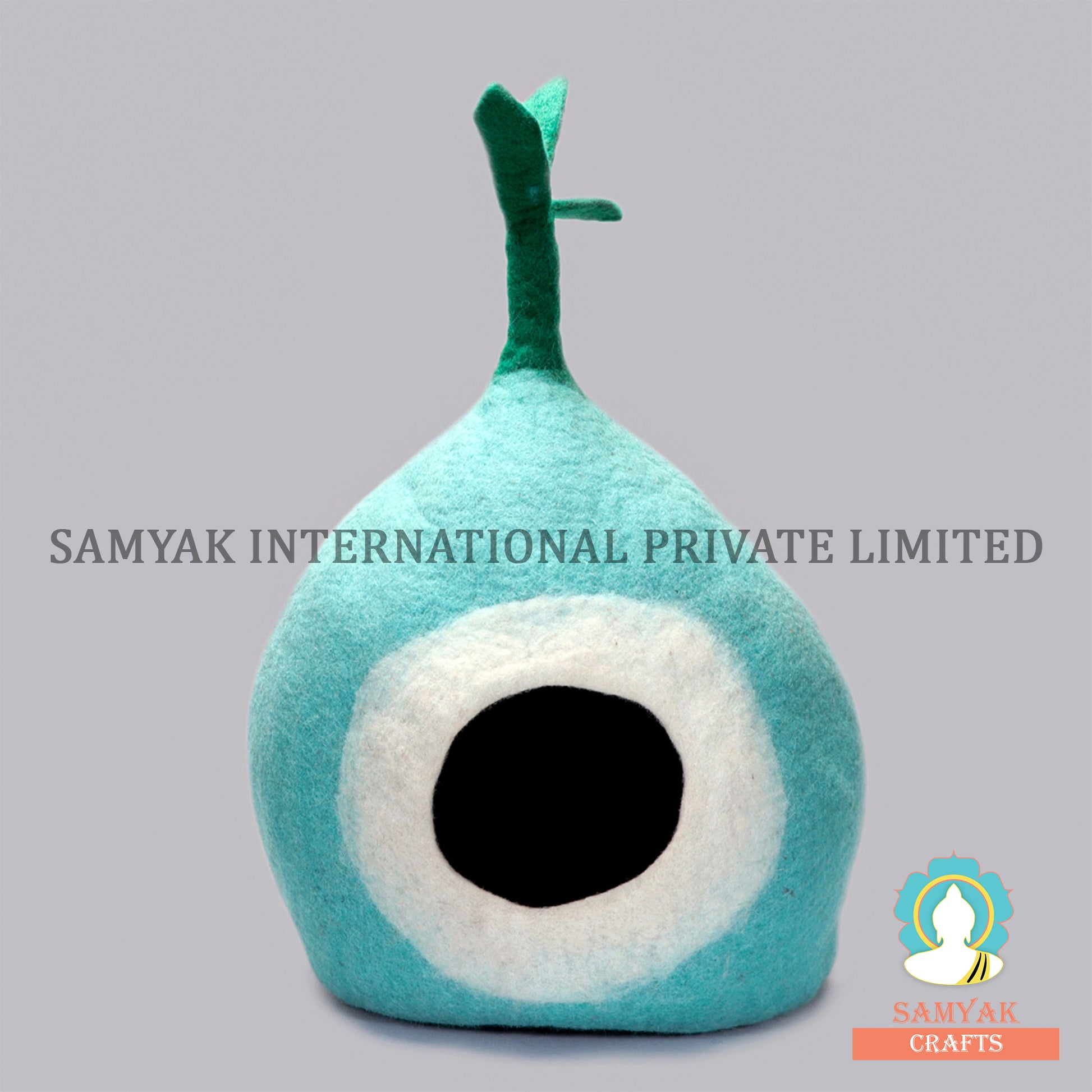 These felted cat caves are easy to clean. Use soap and water to wash them, but gently. Remember to restore their shape before drying. You can also brush with soft brush or use vacuum cleaner.